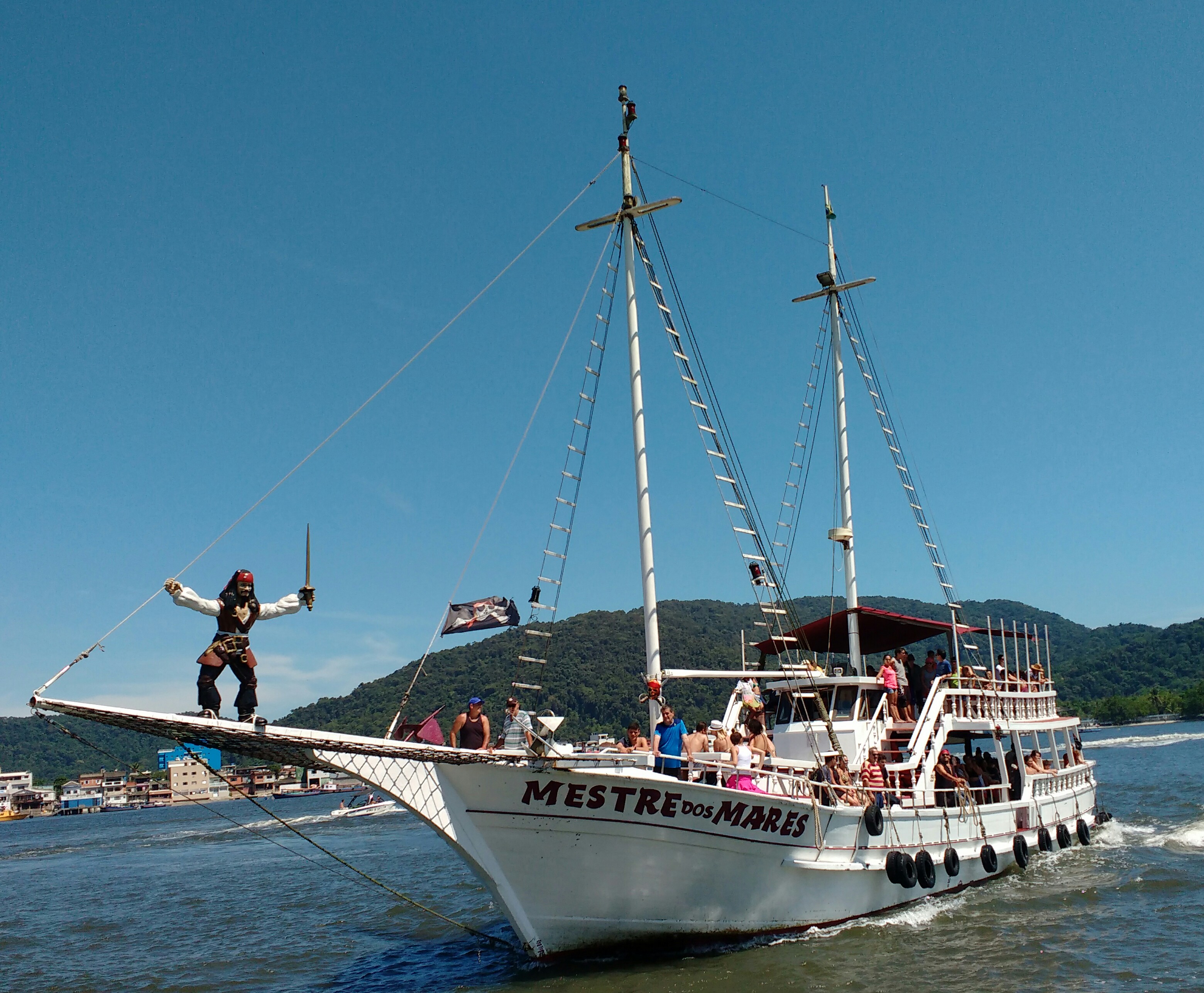 Numa divertida viagem a bordo da Maior escuna da Baixada Santista ‘’A MESTRE DOS MARES’’, o mestre e guia conta a história dos pontos turísticos da cidade de Santos, Guarujá e Porto, fazem sorteios de brindes e ingressos gratuitos, você pode ter suas  fotos personalizadas com o tema de piratas como lembrança do passeio.